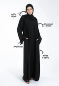 This essential abaya is a must-have for everyday wear and an excellent choice for Hajj, Umrah, and Ramadan. Combining practicality and elegance, it features discreet zip pockets on both sides, perfect for convenient storage. Crafted from premium Nida fabric in a refined A-line silhouette, this abaya offers comfort and timeless style, making it an ideal addition to any wardrobe.